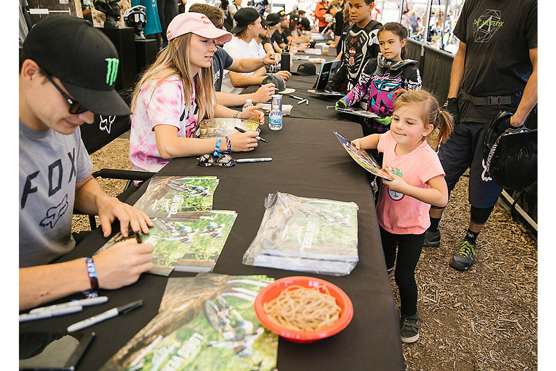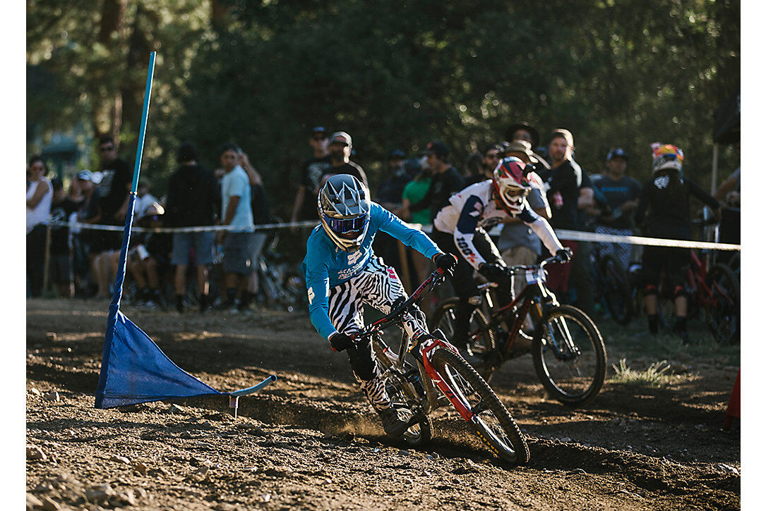 Saturday morning saw athletes take to the course for the GT Enduro Race. Many of these athletes were using the event as a warm-up before the EWS in Zermatt, Switzerland. Their training showed with some fast racing on the dusty trails in and around Snow Summit. EWS riders Cody Kelley and Anneke Beerten took home wins on their way to the EWS finals next weekend. Later that evening, the freestyle riders took center stage at the Best Whip competition. Global athletes and local shredders wowed the crowd with boosted airs and tweaked bikes over the huge double and wall ride built specifically for the event. Fox athletes Ethan Nell, Cam McCaul, Kirt Voreis, and D.J. Brandt entertained the crowd for nearly two hours. In the final, it was BMX and MTB legend Allan Cooke taking the top spot for the adults and local stud Ryan Pinkerton taking top honors in the Grom category.