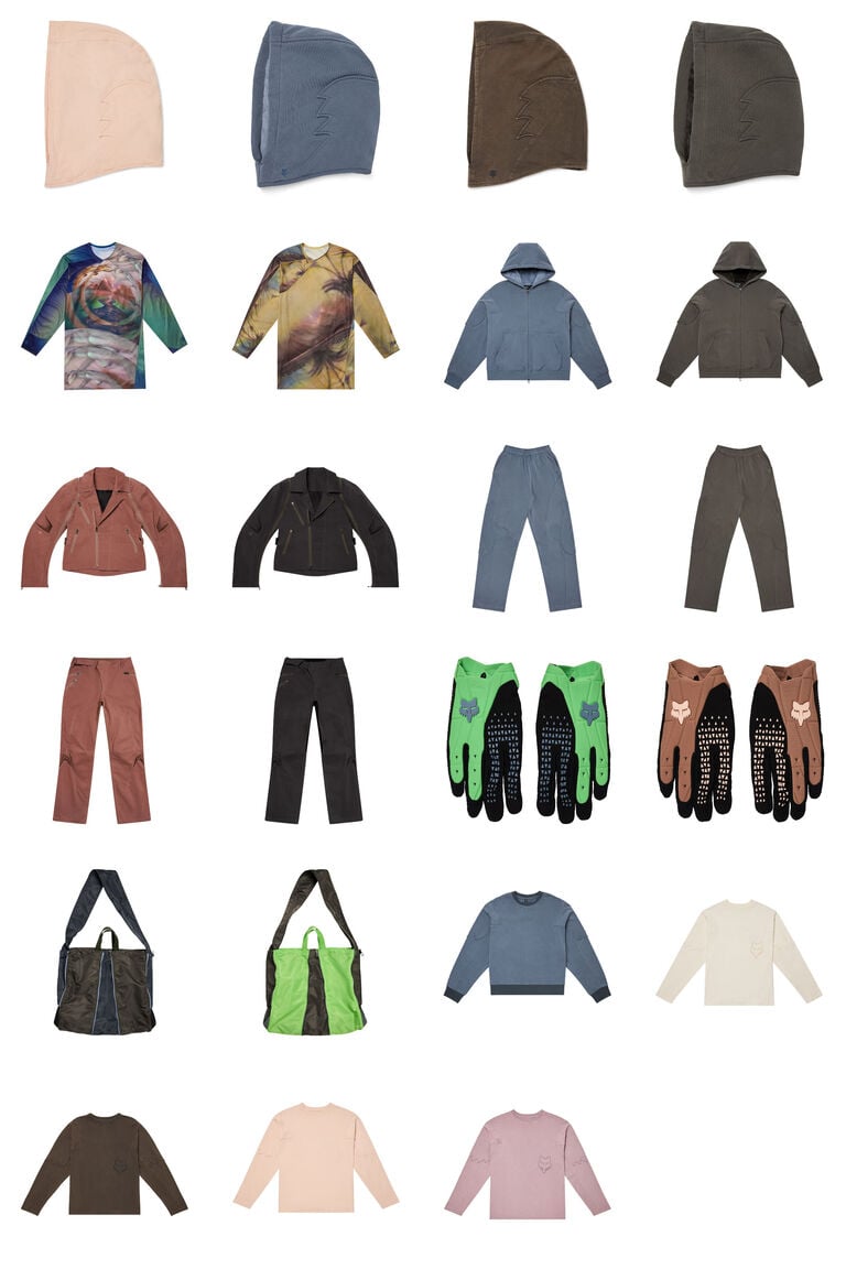 This collaboration between Fox and Kiko Kostadinov reaches back to the beginning of Fox's racing inception when it was known as "Moto-X Fox". Revivifying Fox's signature gear this collection goes back to the old days.